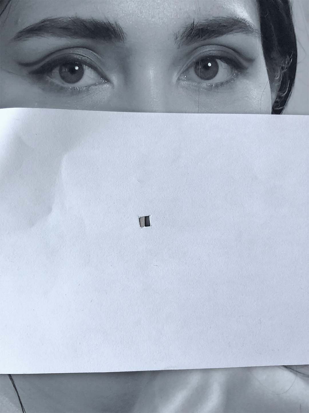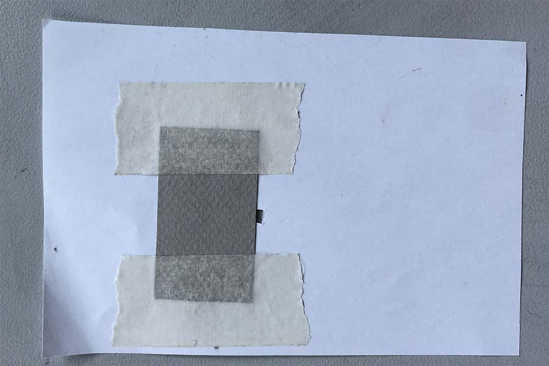 When drawing on toned paper, such as the Canson Mi-Teintes TOUCH Flanelle grey, we can make it even easier for us (easier is always good as it always makes the result better!) by taping a small piece of the drawing paper on the back of our square to cover half of it. You can use a piece of the actual drawing paper or match the tone of it using a graphite B pencil on a regular white paper.